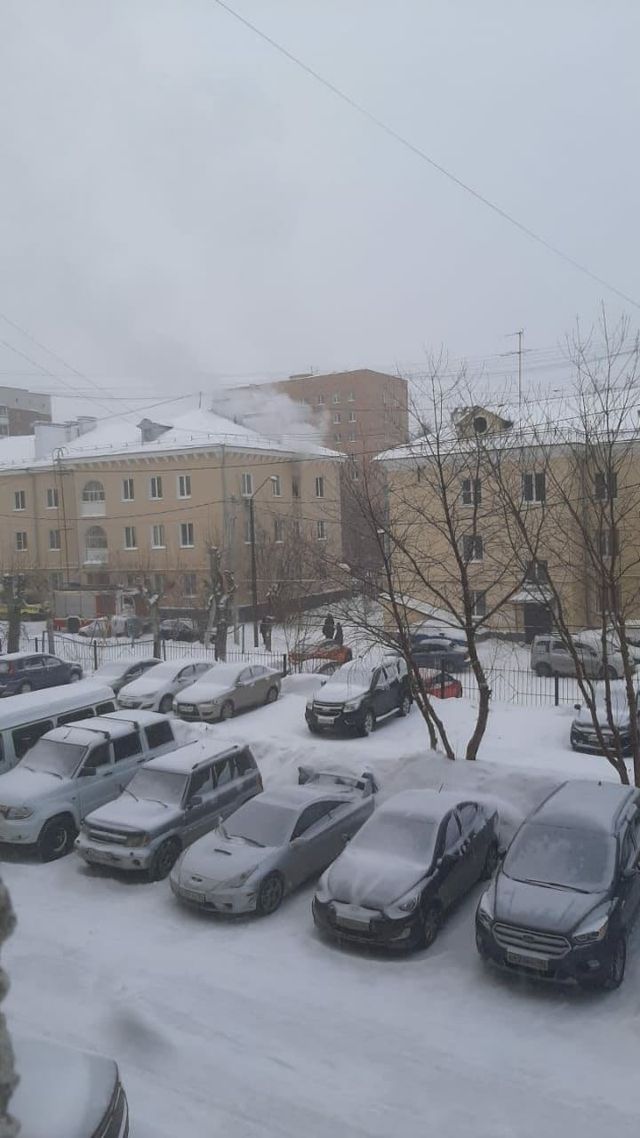 Возгорание произошло на третьем этаже и сопровождается сильным задымлением. К месту происшествия прибыли две пожарные машины и реанимобиль.