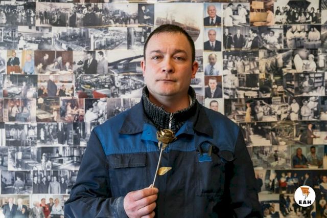 Золотую медаль присудили заместителю директора по общим вопросам и персоналу Андрею Михееву, который изготовил полезную для каждой хозяйки вещь – разделочную доску с поддоном для крошек. Работа ему предстояла непростая: нарезать тонкие пластины из дерева, выточить, высушить, спрессовать, склеить, пропитать изделие – на все ушла целая неделя.