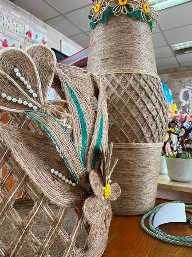Второе место в конкурсе завоевала экономист Елена Столяренко, которая представила плетенные из джута изящные вазы и корзины.