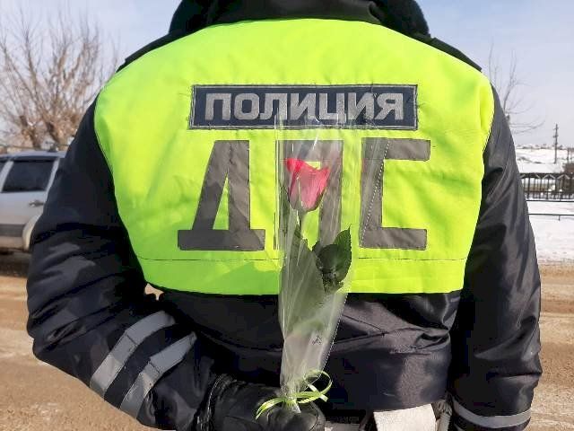Поздравляли женщин и на улицах города. Госавтоинспекторы дарили цветы женщинам за рулем.