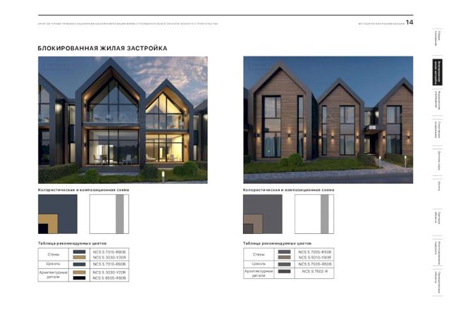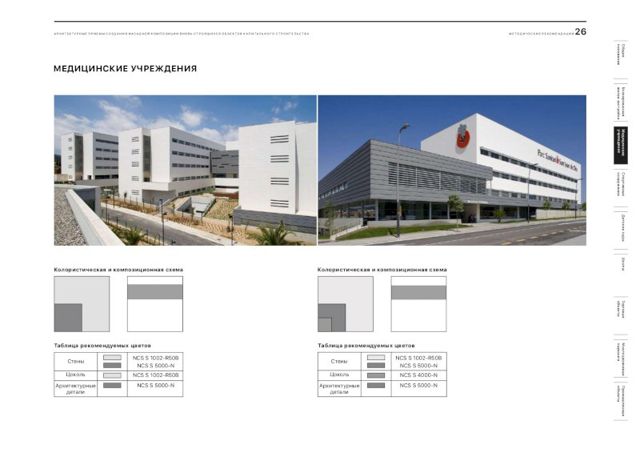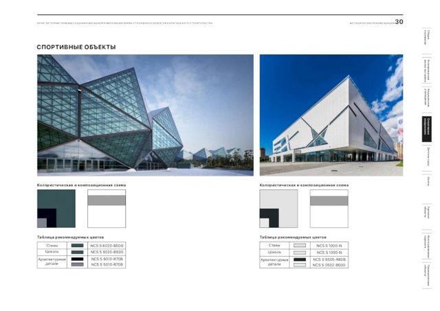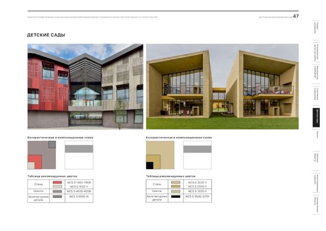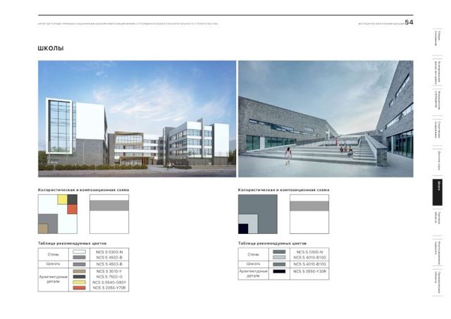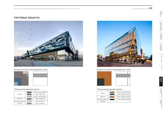 В документе подобраны рекомендации и цветовые решения для оформления внешнего облика новостроек, детских садов, школ, больниц, торговых центров и спортивных объектов. По словам главного архитектора города, при составлении методички были собраны самые удачные решения, примененные в России.