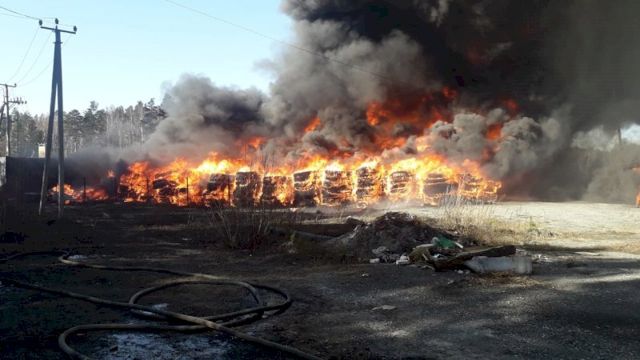 В Асбесте на улице Заводской сегодня днем загорелись автомобильные покрышки, сложенные под открытым небом.