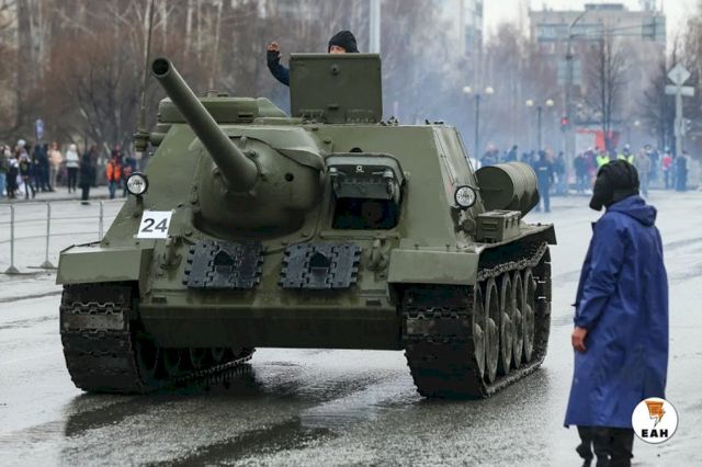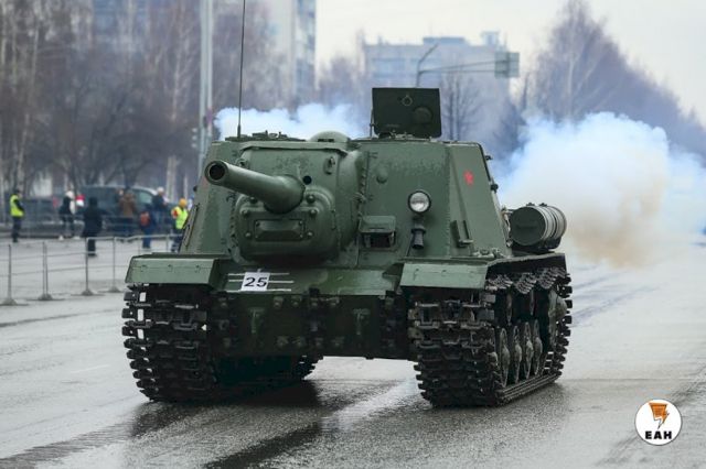 В самом параде примут участие раритетные танки, самоходки, тягачи и автомобили – в том числе Т-34, пятибашенный банк Т-35, созданная на Уралмаше самоходка-истребитель танков СУ-100. В этом году впервые в парадной колонне пройдут тяжелые танки ИС-3 и КВ-1, а также грузовик ЗИС-6 со звукоулавливающей установкой в кузове.
