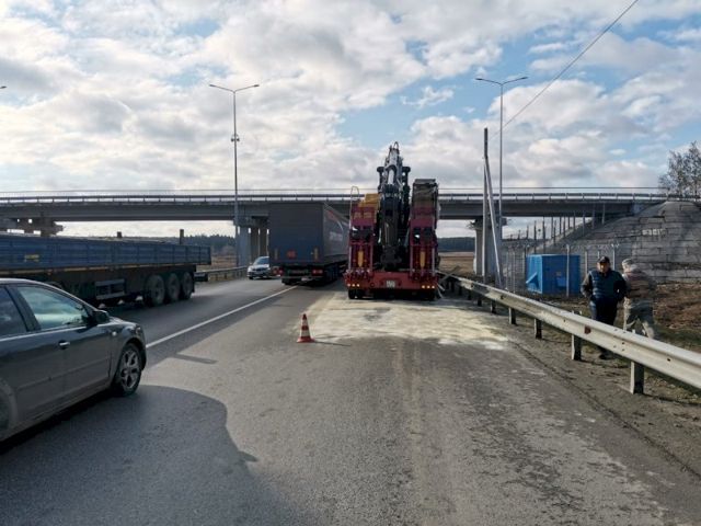 «Большегрузом управлял мужчина 1979 г.р., житель республики Казахстан, который пояснил сотрудникам полиции, что перевозил экскаватор из Березовского в Казахстан, при движении по ЕКАД ночью в направлении Кольцово он заметил путепровод, при проезде конструкции снизил скорость и медленно продолжил движение, задев мост, он сразу же остановился», – уточнили в УГИБДД