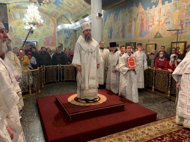 Прямо в терминале аэровокзала отец Максим Миняйло и директор Фонда святой Екатерины Александр Андреев передали огонь в несколько церквей и храмов региона. Под колокольный праздничный звон и пение стихиры «Воскресение Твое, Христе Спасе» вокруг собора был совершен крестный ход, который возглавил владыка Евгений. За Божественной литургией звучало Пасхальное Евангелие на разных языках. После Божественной литургии священнослужители традиционно освятили пасхальную снедь, которую принесли прихожане.