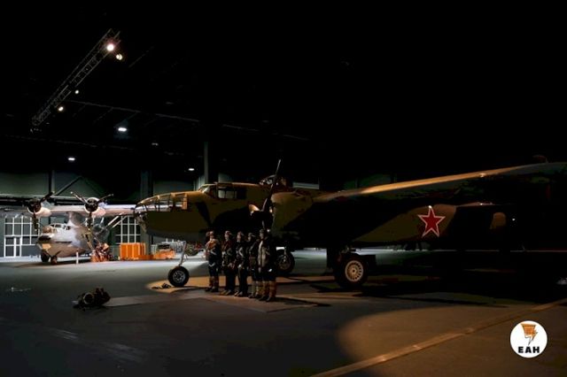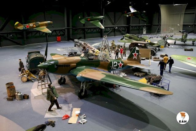 Композиция большого выставочного зала образована наиболее крупными самолетами коллекции. Рядом с советскими самолетами – «летающим танком» ИЛ-2, символом предвоенных ВВС, главным героем популярного фильма «Валерий Чкалов» истребителем И-16, лучшим пикирующим бомбардировщиком того времени ТУ-2 - стоят поставлявшиеся в Советский Союз по программе ленд-лиза бомбардировщики Douglas A-20 Boston, North American B-25J Mitchell, транспортный Douglas DC-3 и самый крупный самолет выставочного центра ––американская летающая лодка PBY «Catalina». Ее длина 19 метров, а размах крыла больше 31 метра.