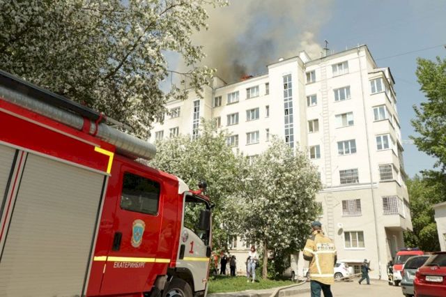 В Екатеринбурге загорелся 8-этажный дом 1934-го года постройки на улице Шейнкмана, 19.