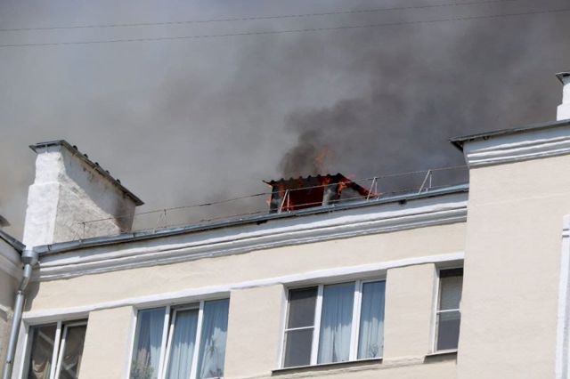 «Горит кровля открытым пламенем, сильное задымление на лестничных клетках. Идет эвакуация граждан, но в квартирах еще остаются люди, в том числе нетранспортабельные инвалиды», - сообщил ЕАН информированный источник.
