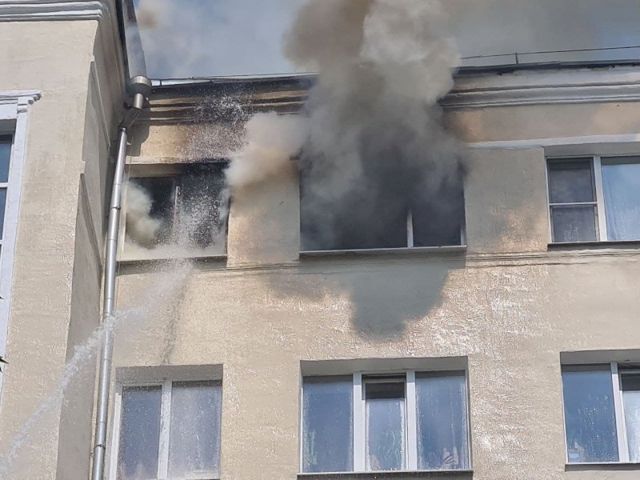Ранее ЕАН писал, что загорелась кровля многоэтажки. К горящему дому стягиваются большие силы МЧС, пожару присвоен 2 ранг сложности. К месту пожара вызвали машины скорой помощи и полицию, для того, чтобы перекрыли движение по близлежащей улице. Площадь пожара уточняется, пока пожарные не могут попасть на чердак для тушения огня, так как закрыты все люки. Спасатели пытаются проникнуть в квартиру инвалида через железную дверь. До сих пор не удалось попасть в горящую квартиру. Кроме того, невозможно выйти на кровлю из-за высокой температуры и плотного задымления.