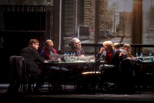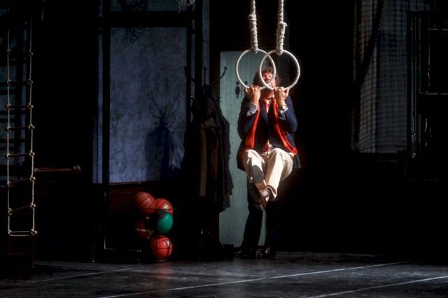 На сцене зритель увидел уже знакомых персонажей в исполнении других актеров. Прозрачный экран периодически включался, зрителю демонстрировали фрагменты из фильма - это детство мальчика.