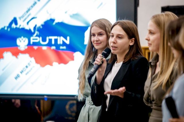 Девушки из «Сима-ленда» вышли внушительной компанией, и каждая начинала презентацию со слов: «Россия для меня - это...». Главный посыл – поддержка политики на укрепления власти.