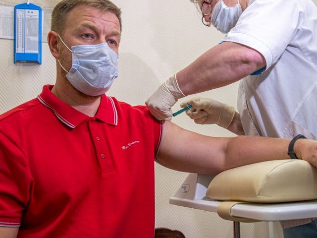 В первый день прививку поставили 60 человек, все – жители отдаленного микрорайона. Предварительно они записались через регистратуру поликлиники, получили консультации по противопоказаниям к вакцинации и «допуск» от своих участковых врачей. На месте пациентов, как и положено, осмотрели медики.