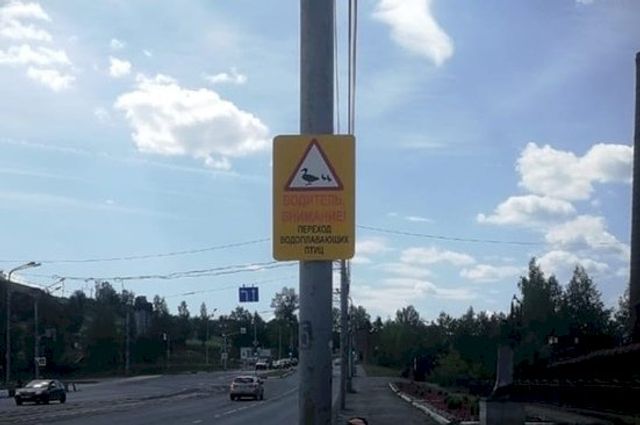 В Нижнем Тагиле установили необычные дорожные знаки «Внимание! Утки!».