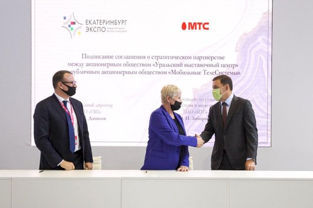МТС и «Уральский выставочный центр» на выставке "Иннопром-2021" в присутствии губернатора Евгения Куйвашева подписали соглашение о совместном развитии концертно-развлекательной деятельности в Свердловской области. В рамках партнерства конгресс-центр «Екатеринбург-Экспо» получит название «МТС Live Холл».