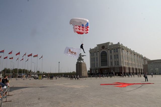 Так на город высадился воздушный десант с флагами Верхней Пышмы, Свердловской области, ВВС и России. Ансамбль песни и пляски Центрального военного округа исполнил для собравшихся военные песни с импровизированной сцены - военного грузовика ЗИС-5. А присутствовавшие на мероприятии дети смогли поучаствовать в запуске бумажных самолетиков. Лучший из начинающих пилотов получил приз с автографами спортсменов-парашютистов клуба ДОСААФ.