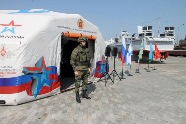 Присутствующие на празднике так же смогли попробовать настоящий солдатский обед из свежеиспеченного хлеба и гречневой каши с мясом. Рядом с армейской кухней действовал пункт набора для службы в армии по контракту.
