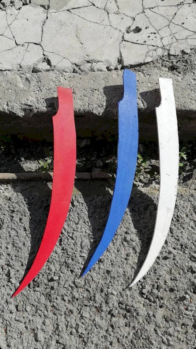 Еще одну работу сделал Alexey Ilkaif. Он собрал косу с тремя лезвиями в цвет российского триколора и подвесил ее на угол дома на улице Розы Люксембург, 38.
