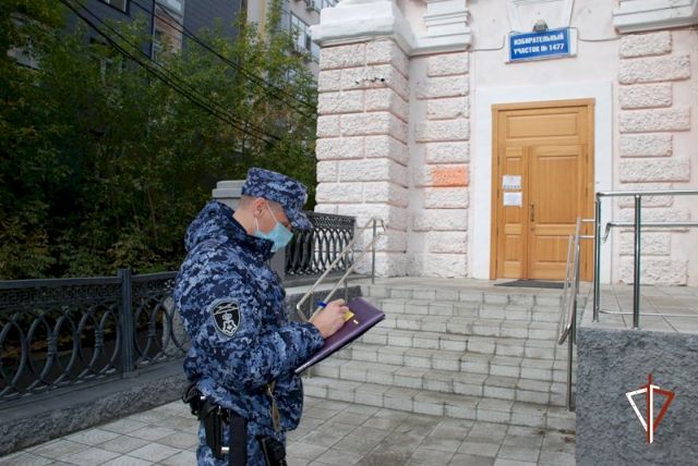 Сотрудники лицензионно-разрешительных подразделений Росгвардии проводят проверки владельцев гражданского оружия, которые проживают не далее 500 м от избирательных участков. Кроме того, росгвардейцы осматривают комнаты хранения оружия в частных охранных, спортивных, образовательных организациях и на объектах, осуществляющих торговлю оружием и боеприпасами.