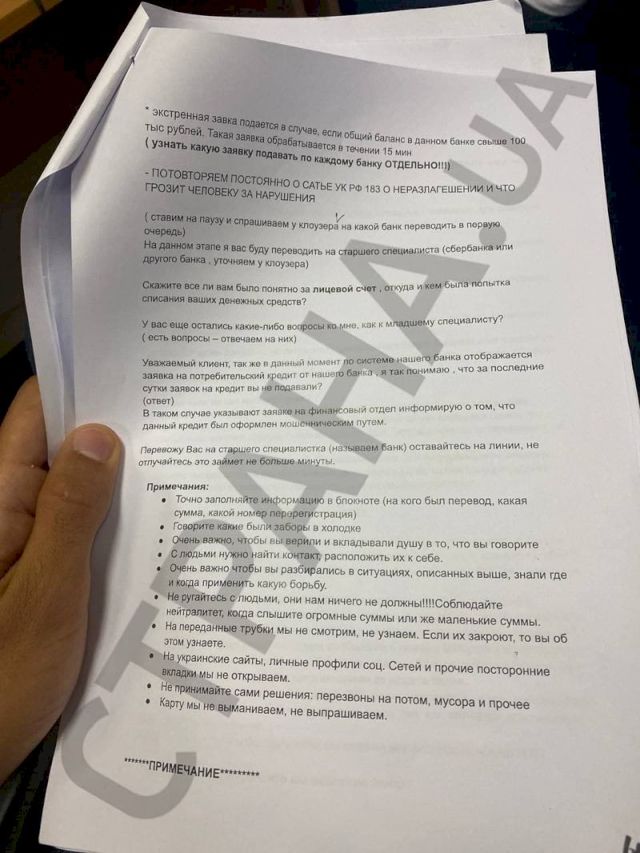 "Мы звоним гражданам России, представляемся техническими сотрудниками Сбербанка и пытаемся развести людей на то, чтобы они перевели деньги со своих банковских карт на наши, а если у них нет денег, то чтобы они взяли кредит и перевели деньги нам. Как это делать, написано в методичке", – рассказывает Михаил, но сразу пытается успокоить, что банковские карты людей застрахованы, а "украсть у банка не страшно".