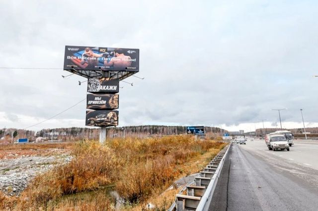 Екатеринбуржцы вывесили баннеры в поддержку российского бойца UFC Петра Яна. Фотография спортсмена с подписью «Вся Россия за Петра Яна» появилась на Кольцовском тракте.