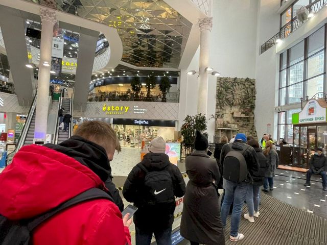 Как и ожидалось, большим центрам пришлось сложнее, там где-то после полудня, а где-то уже с утра, начали образовываться пробки. Местами, как в "Дирижабле", покупателям пришлось постоять в очереди на улице, где-то, как в "Гринвиче", внутри здания.
