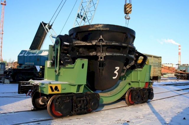 Как сообщает пресс-служба компании, машина будет перевозить горячий шлак в жидком виде от металлургических агрегатов в отвал. Объем чаши шлаковоза составляет 11 кубических метров. Всего в цехе 14 единиц, которые обслуживают 4 конвертера и 3 шахтных печи.