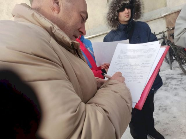 Всего около Общественной палаты собрались 15 человек. Они подписывают обращения и попытаются зайти в ведомство, чтобы оставить свои обращения.