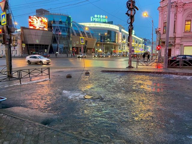 Улицы Екатеринбурга превратились в настоящий каток после прошедшего накануне дождя. Дороги и тротуары города покрылись ледяной коркой.