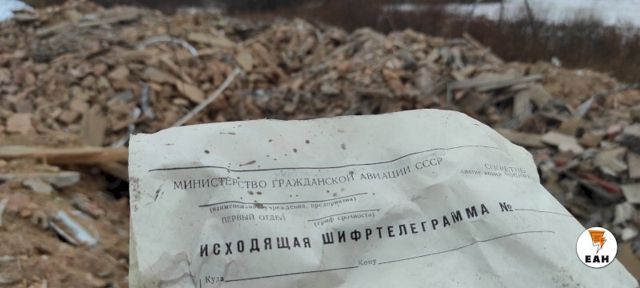 ЕАН побывал на месте событий. Среди обломков можно найти лепнину от здания аэровокзала, счета Ространснадзора, который когда-то использовал здание, бланки министерства гражданской авиации СССР.