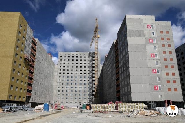 В Екатеринбурге произошел пожар на территории строящейся Деревни Универсиады. По информации очевидцев, загорелись стройматериалы в общежитии.
