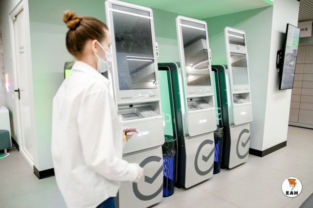 В отдельной зоне расположены банкоматы нового поколения, оборудованные системой биометрии. Если клиент уже зарегистрировался в биометрической системе, то устройства узнают его по лицу, и, чтобы совершить какую-либо операцию, ему не понадобится банковская карта.