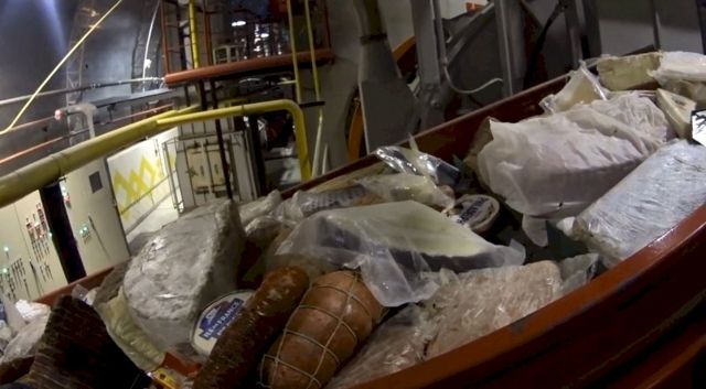 Как следует из представленных кадров, запрещенную к провозу еду погрузили на конвейер и отправили в печь.