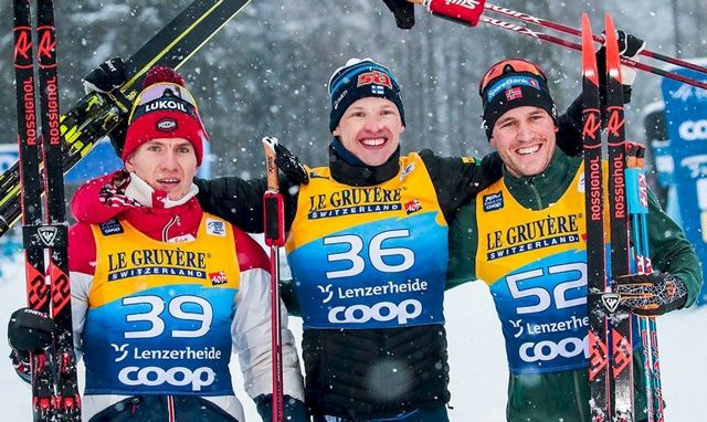 После сегодняшней гонки в общем зачете Кубка мира офицер Росгвардии старший лейтенант Александр Большунов занимает третье строчку, имея в активе 342 очка, уступая с минимальным отрывом французу Ришару Жуве.