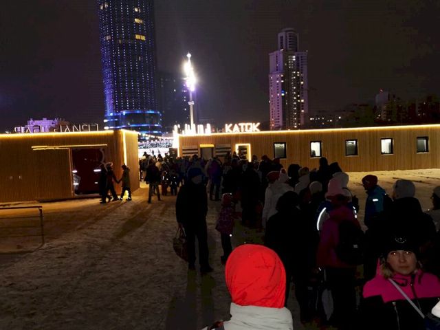 Толпы екатеринбужцев гуляют по городу и выстраиваются в очереди в желании попасть на катки и зимние горки. Люди толпятся перед входом на каток «Северное сияние» в Парке Маяковского, на катки «Юность» и «Сезоны» в Исеть парке, а также на горку высотой с пятиэтажный дом в Парке Маяковского. Как пишут читатели ЕАН, время ожидание в очереди на горку может составлять до полутора часов.