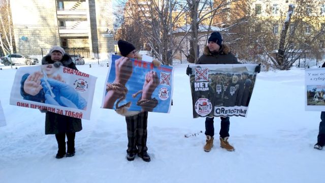 Впрочем, такая малочисленность объяснима на фоне недавнего похолодания и завершающихся новогодних каникул. Да и с конца декабря в области действуют QR-каникулы для бизнеса (для ТЦ – до 20 января, для остальных — до 15 января). Разобрав транспаранты, активисты стали в кружок, показывая плакаты друг другу.