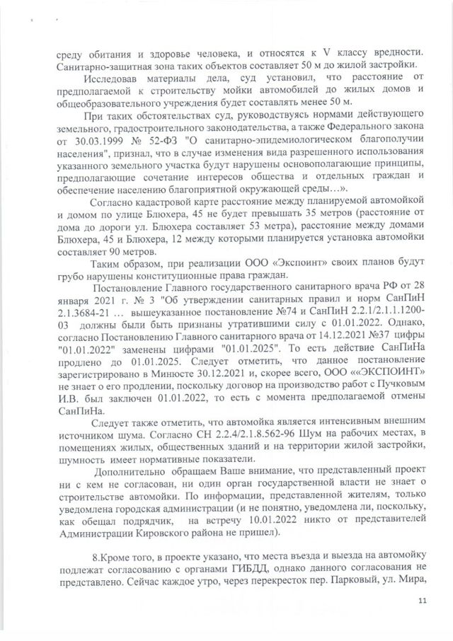 Жители домов 16-16Б, 41-45 на улице Блюхера в Екатеринбурге написали коллективное обращение в свердловскую прокуратуру и в администрацию города по поводу строительства большой автомойки на пустыре под их окнами. За полдня активистам удалось собрать 280 подписей под документами, сообщили ЕАН в местном ТСЖ.