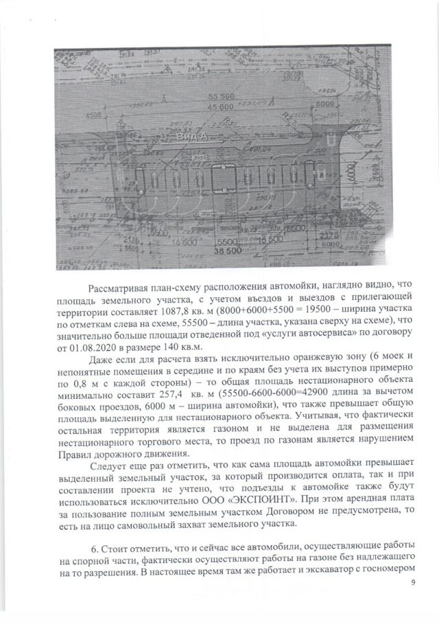 4. Проверить в принципе законность постройки автомойки, по площади значительно превышающей площадь участка для размещения объекта нестационарной сети.
