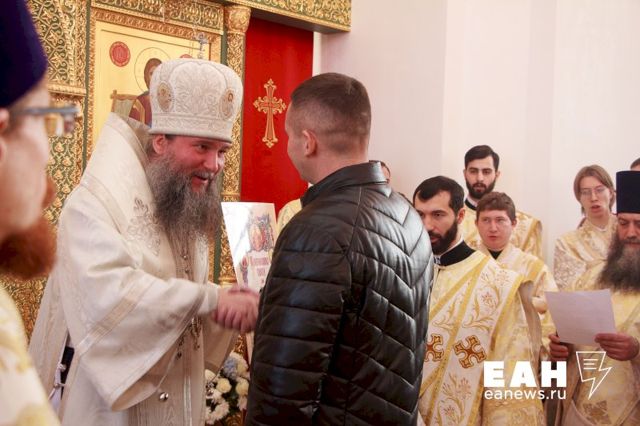 В конце литургии митрополит Евгений наградил медалями святой великомученицы Екатерины и благодарственными грамотами ключевых участников восстановительных работ. А Фонд святой Екатерины преподнес храму еще один подарок — богослужебные сосуды и покровцы, без которых невозможно проводить литургии.