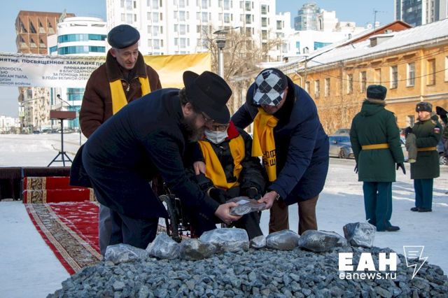 В Екатеринбурге прошла церемония закладки первых камней монумента в память о жертвах Холокоста, с благодарностью Красной Армии и труженикам тыла, победившим нацизм в годы Великой Отечественной войны. Памятник расположится на площади Спасения в благодарность Уралу за помощь эвакуированным в годы Великой Отечественной войны. Основание этой площади также было заложено сегодня на Куйбышева, 38а.
