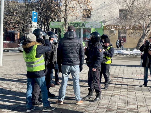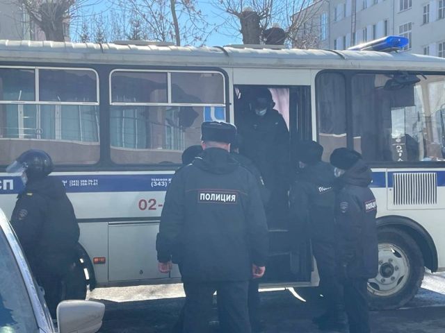 Незаконные акции против спецоперации в защиту мирного населения Донбасса проходят в Екатеринбурге третий день. Только за 24 февраля полиция задержала 52 активиста. Вчера суды привлекли к ответственности 11 человек.