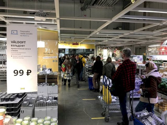 Напомним, вчера IKEA заявила, что закрывает свои магазины по всей России. Вечером жители Екатеринбурга массово отправились в магазин, скупая все – от постельного белья и свечей до крупногабаритной мебели. Перед кассами выстроились длинные очереди.