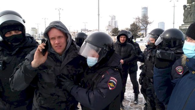 В центре Екатеринбурга полиция и Росгвардия 6 марта пресекли несанкционированную акцию против военной спецоперации на Украине.