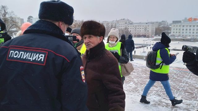 В разгар событий на площадь Труда пришел пожилой мужчина (с его слов, ему более 90 лет). Посмотрев на действия полиции, он устроил спонтанное выступление. Больше всего в его речи досталось журналистам, которые окружили пенсионера.