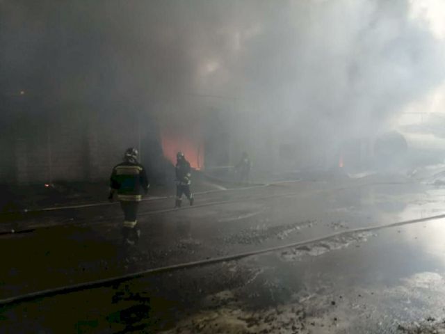 Ангар со строительной техникой полыхал под Екатеринбургом на площади 900 кв.м23 марта 2022 в 07:28