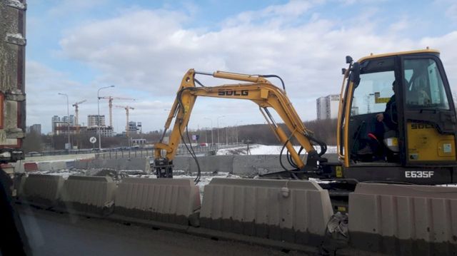 Читатель ЕАН сообщила, что одна из полос уже перекрыта. Как ЕАН подтвердили в пресс-службе мэрии, на развязке до 10 апреля движение ограничено по одной полосе, чтобы рабочие могли выполнить подготовительные работы.