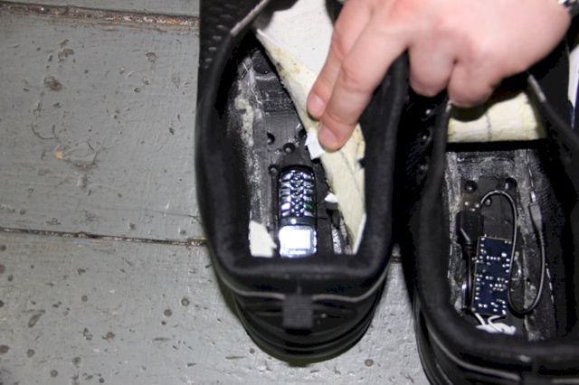 При обыске были найдены и изъяты два сотовых телефона, три сим-карты, зарядное устройство, два USB-провода. Все эти предметы были спрятаны в подошвах кроссовок.