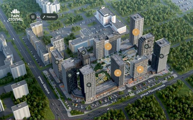 Сложнее ситуация на соседнем объекте - ЖК «Парк столиц» - в квартале улиц Циолковского – Московской – Щорса. Застройщиком выступает «Атлас Девелопмент». По проекту запланировано строительство десяти домов. На сегодняшний день сдана только одна очередь, еще три в процессе строительства. По оставшимся шести застройщик даже не открыл продажи. А на фоне последних экономических изменений выставление новых объектов на продажу может быть отложено на неопределенный срок. По факту на площадке на момент съемок работы велись на двух объектах с высокой степенью готовности.