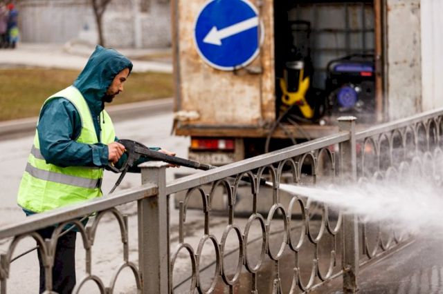 Как сообщает пресс-служба городской администрации, техника и рабочая промывают проезжую часть, тротуары, а также ограждения.