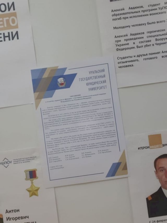 «Студенты и преподаватели Института специальных образовательных программ УрГЮУ имени В. Ф. Яковлева простились с Алексеем Авдюковым. Студент группы ИСОП101Б-ПЮ-вф-со погиб при исполнении воинского долга. Алексей Авдюков героически исполнял воинский долг при проведении специальной военной операции на Украине в составе Вооруженных сил России. Был убит в Черниговской области», - сказано на сайте вуза.