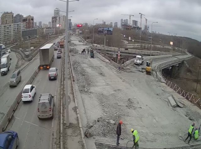 Позже ситуация немного изменилась. Судя по трансляции на сайте мэрии, в 09:30 на одном участке моста появилось 7-8 строителей. Однако большая часть дороги осталась пустой.